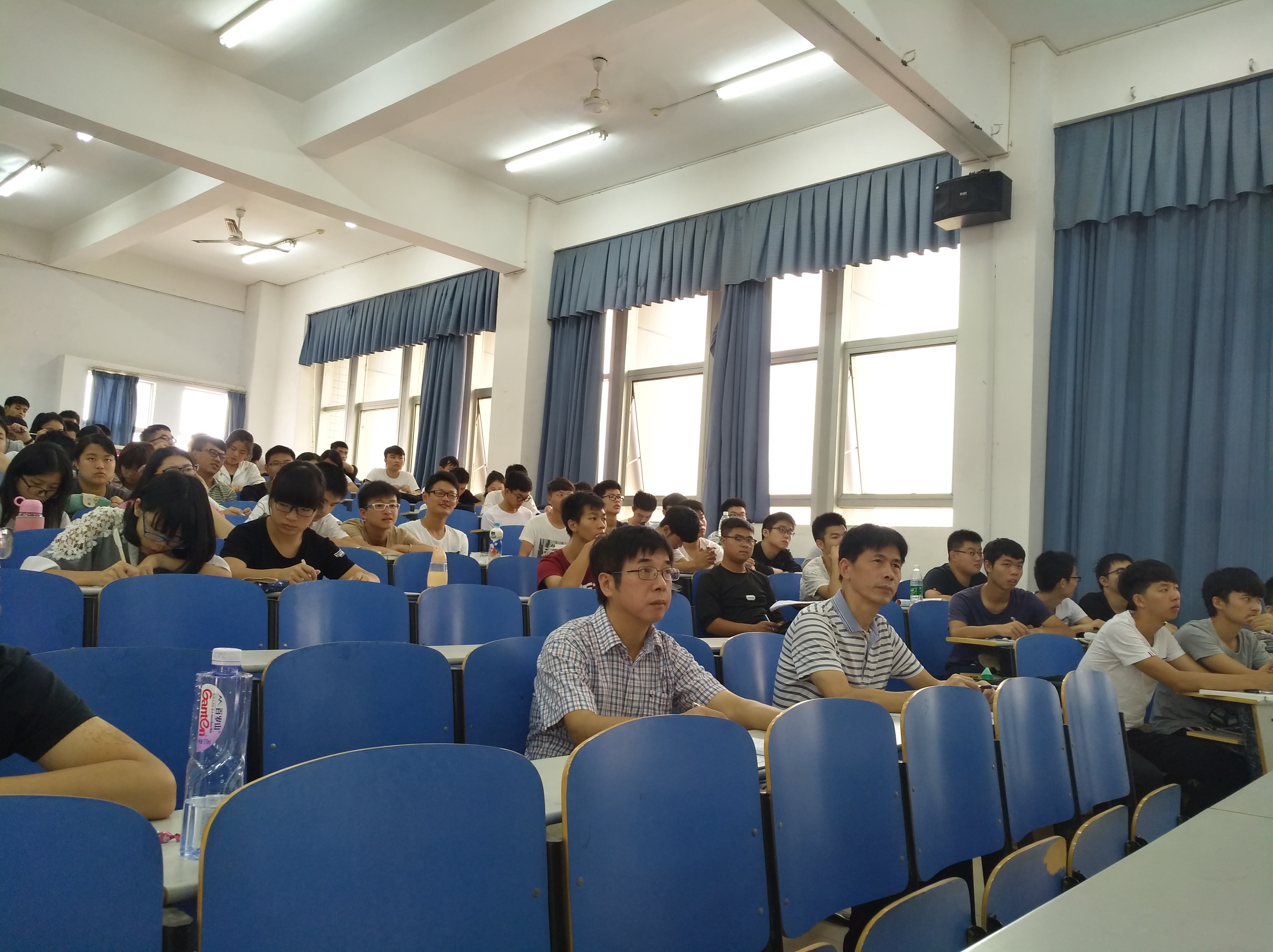9月18日,日日摸夜夜爽院长高其荣教授、工会主席廖显满副教授、院长助理刘小华博士在15308教室听了吴军博士所教班级的一堂课。