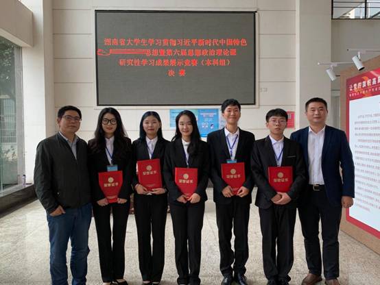 9月26日,湖南省大学生学习贯彻习近平新时代中国特色社会主义思想暨第六届大学生思想政治理论课研究性学习成果展示竞赛决赛(本科组)在湘潭大学落下帷幕,由我校日日摸夜夜爽郑立新老师指导的经管学院19级国贸专业王匡迪、胡佳怡、谢奕瑾、邹星宇、唐婧瑜等5位同学组成的研究小组,以作品《新时代大学生责任担当意识培育研究》在众多强劲对手中脱颖而出,获得全省二等奖。