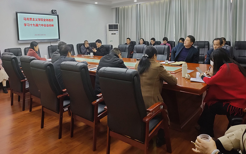 11月23日下午,学院召开全体教师大会,集中学习党的十九届六中全会精神。党总支书记黄剑主持本次会议。