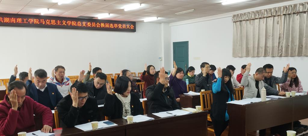 大会严格按照《中国共产党章程》《中国共产党基层组织选举工作暂行条例》和《中共湖南理工学院委员会二级党组织换届选举工作实施方案》等规定通过《选举办法》、候选人名单、监票人名单等。大会采取无记名投票方式进行差额选举,选举产生了由黄剑、高其荣、刘小华、杜艳艳、郑立新等五位同志组成的新一届党总支委员会。