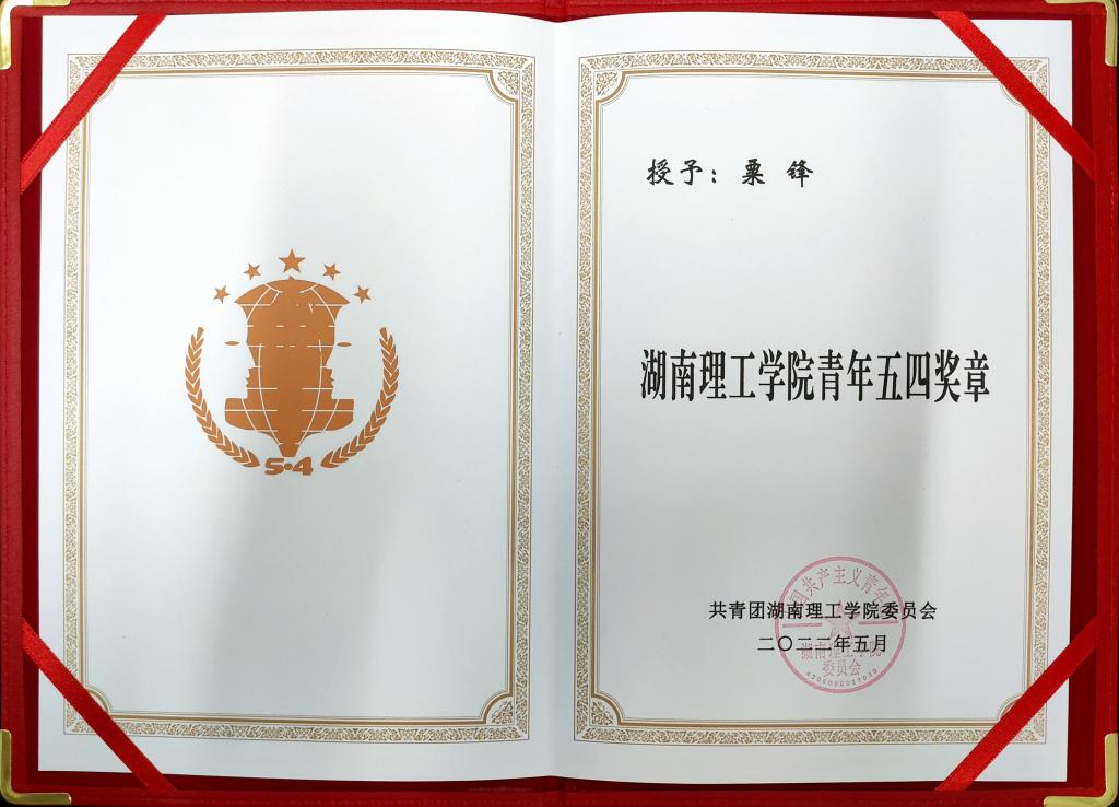 “五四”青年节到来之际,我院青年教师粟锋和学生吴昊楠荣获学校“青年五四奖章”称号。