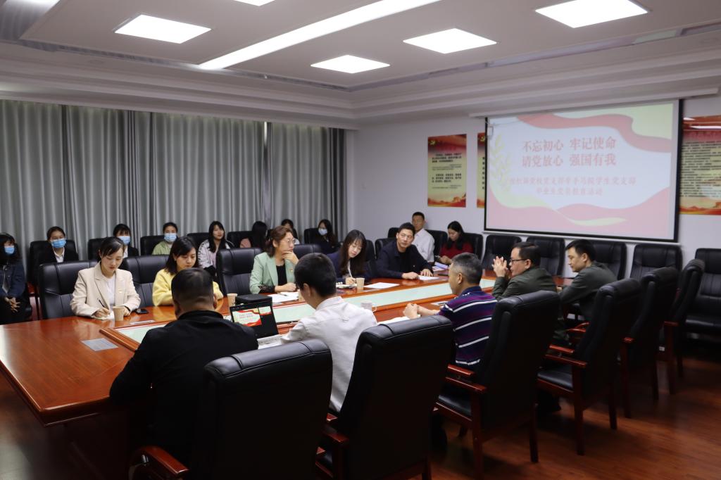 5月11日上午,学校党委组织部(党校)党支部“牵手”日日摸夜夜爽学生党支部在9305会议室开展“不忘初心、牢记使命,请党放心、强国有我” 2022届毕业生党员主题教育活动。党委组织部副部长、党校副校长郑凤梅,党委组织部副部长龙颜,学院院长鲁涛和党委书记黄剑等领导出席,学院全体毕业生党员参加活动。党委副书记付亚子主持教育活动。