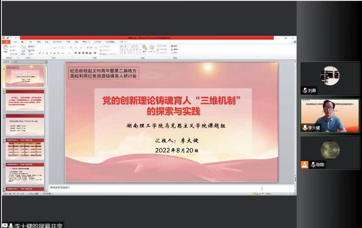 为了纪念秋收起义爆发95周年,探讨开发和利用地方红色资源进行大学生思想政治教育,加强地方高校之间合作,8月20日,我校联合宜春学院、宜春市委党校主办了主题为“纪念秋收起义95周年暨第二届地方高校利用红色资源铸魂育人”的学术研讨会。大会以线上线下相结合的方式进行,线下会场设在宜春学院。