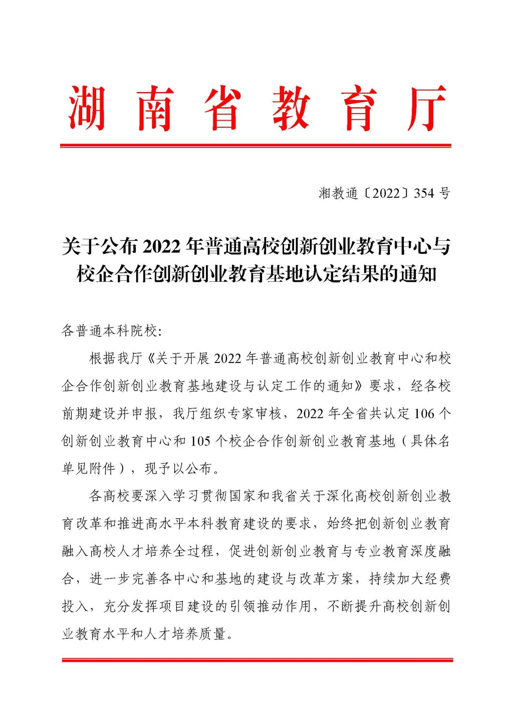 近日,湖南省教育厅发文《关于公布2022年普通高校创新创业教育中心与校企合作创新创业教育基地认定结果的通知》(湘教通〔2022〕354 号),我院思想政治教育师范专业大学生创新创业教育中心入选省级创新创业教育中心,中心负责人为杜艳艳教授。