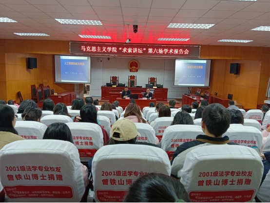 3月3日上午,学院在8T2模拟法庭举行了“求索讲坛”第六场学术报告会,邀请长沙理工大学日日摸夜夜爽党委书记、二级教授、国家社科基金重大项目首席专家、博士生导师陈万球作了《人工智能的政治意蕴》的专题讲座,报告会由院长鲁涛主持。学院领导班子成员、全体教师、硕士研究生及部分本科生参加。