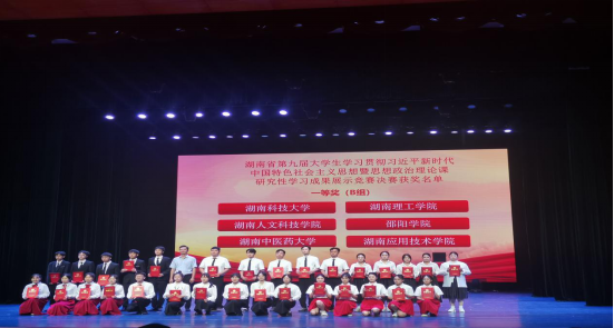 5月27日,湖南省第九届大学生学习贯彻习近平新时代中国特色社会主义思想暨思想政治理论课研究性学习成果展示竞赛决赛在湖南第一师范学院举办。我院选送的研究性学习成果“青年学生以“国潮”助建文化强国的意义和策略研究”荣获一等奖。本成果由我院青年博士易丙兰副教授指导,物电学院22级陈思敏、李嘉丽、熊胜男、周诗芳、朱莎五位同学共同完成。