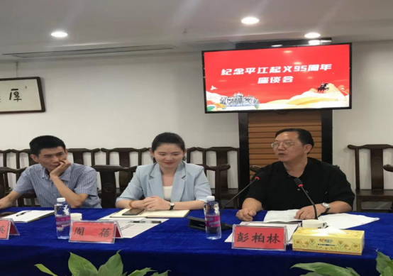 7月22日,由我院与中共平江县委宣传部、平江起义纪念馆联合主办的“纪念平江起义95周年研讨会”在平江起义纪念馆举行。我院院长鲁涛,《云梦学刊》主编、二级教授彭柏林,平江县委常委、宣传部长田浩,平江县人武部政治委员郭兴义以及我院部分青年博士、平江县各界人士共三十余人参加了此次座谈会。平江县委宣传部副部长余庆东主持会议。与会代表就如何加强平江红色文化的传承发展进行了深入探讨。