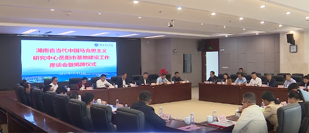 10月11日,湖南省当代中国马克思主义研究中心岳阳市基地建设工作座谈会暨揭牌仪式在学校图书馆11楼会议厅举行,岳阳市委常委、市委宣传部部长刘启峰出席并讲话,学校党委书记卢先明致辞。仪式由学校党委委员、副校长徐振祥主持。来自市委宣传部、市委政研室、市直机关工委、市政府研究室、市政协经科委、市委党校、市社科联、君山区委宣传部、学校各相关学院和岳阳开放大学等单位的领导和社科专家共40余人参加揭牌仪式。