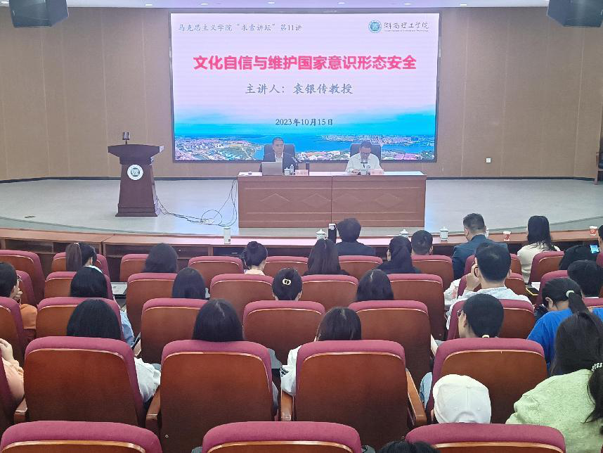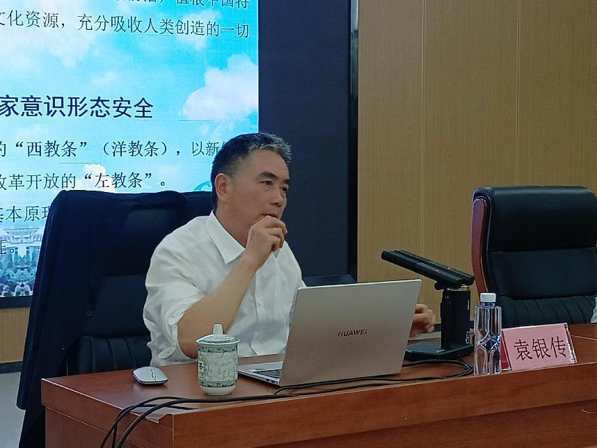 10月15日上午,教育部长江学者特聘教授、武汉大学二级教授袁银传先生应邀来我院担任“求索讲坛”第11期主讲嘉宾,主讲“文化自信与国家意识形态安全”。学院领导班子成员、教师代表和全体本科生、研究生参加听讲座。讲座由学院院长鲁涛主持。