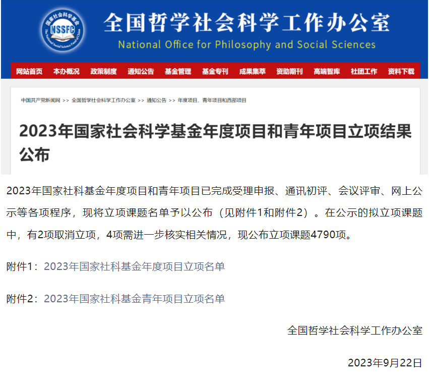 9月底,2023年国家社会科学基金年度项目立项结果公布,我院二级教授彭柏林博士申报的“中国特色志愿服务伦理思想”项目获得立项(编号为23BZX087)。这是彭柏林教授第三次获得国家社会科学基金项目立项,前两次项目均已顺利结项,终期成果《当代中国公益伦理》《中国特色社会主义志愿服务伦理学》均由人民出版社分别于2010年和2023年出版,并在学术界产生了较大的反响。