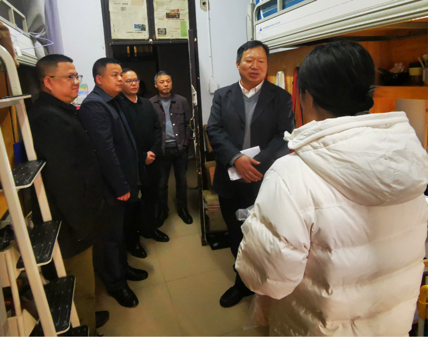 在11栋学生宿舍,曾祥君校长走进寝室慰问我院21级思政专业学生苏同学。校长亲切问候了同学的学习和生活情况,随后表示,学校永远是同学们的坚强后盾,希望同学们以学校为家,如遇到困难及时向老师寻求帮助。他勉励同学们要自信、自立、自强,以乐观向上的心态面对生活,学好专业知识,拓宽知识面,做好职业规划,争取将来能为国家和社会做出贡献。他预祝同学们新年快乐,身体健康,在新的一年里取得更好成绩。