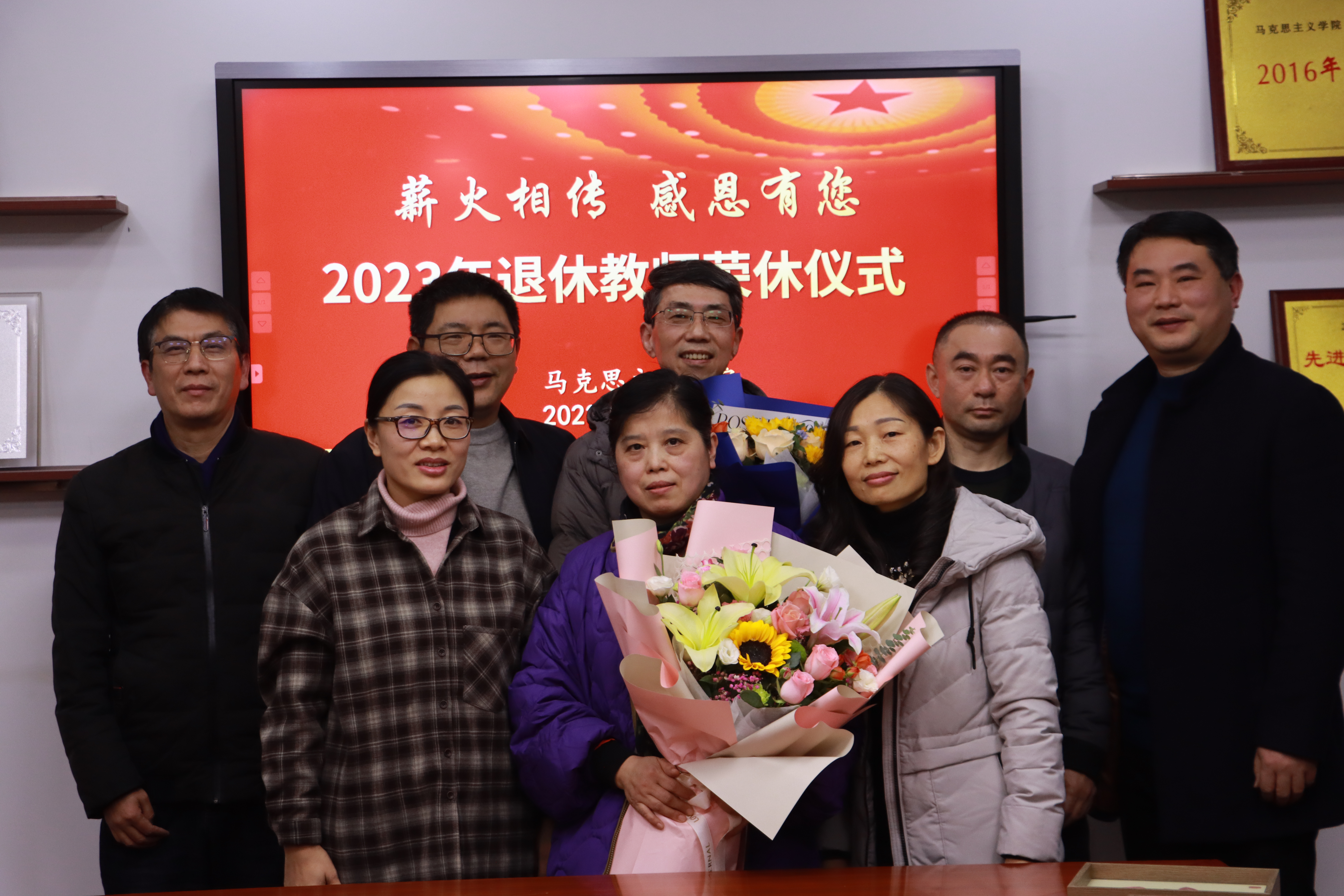 12月29日下午,“薪火相传 感恩有您”,学院为李大健、范虹、陈其胜、匡促联四位教授举行2023年度退休教师荣休仪式。学校党委宣传部常务副部长、教师工作部部长王庆华出席,学院党政班子成员,分工会委员、部分教研室主任和青年博士代表参加。仪式由学院党委书记黄剑主持。