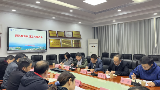 上一轮刚通过专业认证的物电学院、外语学院分管教学副院长分别作了经验分享。思想政治教育、体育教育、数学与应用数学三个专业汇报了自评自建工作进展,同时提出存在的问题和困难,并对下一步工作提出了建设性意见和建议。