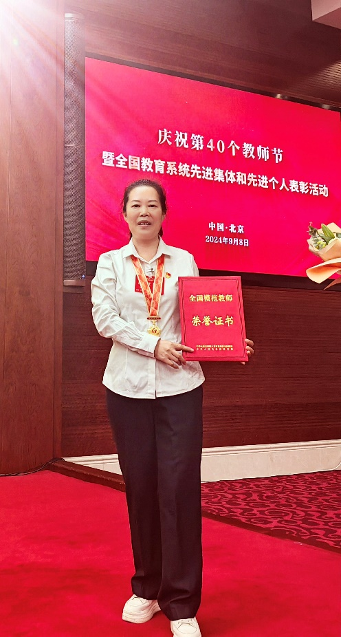 (方威先,女,中共党员,副高级教师,从教30年,坚守乡村教育教学岗位,坚守初中毕业班三尺讲台,连续多年被评为“教学能手”“优秀共产党员”,先后获评县“师德标兵”“优秀班主任”“思政骨干教师”“优秀思政课教师”,岳阳市“优秀教师”等称号,科研课题和论文多次在省市获奖,2019年获评“湖南省优秀乡村教师”,2024年获评“全国模范教师”。)