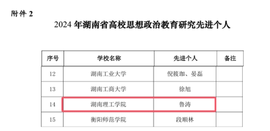 近日,湖南省高校思想政治教育研究会公布《关于表彰2024年湖南省高校思想政治教育研究先进单位、先进个人,优秀论文、优秀案例、优秀专著的通报》,学校获评“2024年湖南省高校思想政治教育研究先进单位”,我院教师喜获多项荣誉。