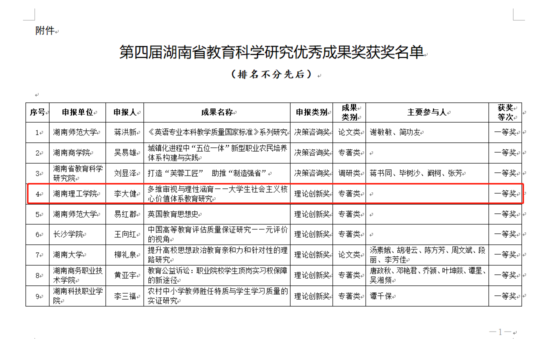 附件:第四届湖南省教育科学研究优秀成果奖获奖名单.docx