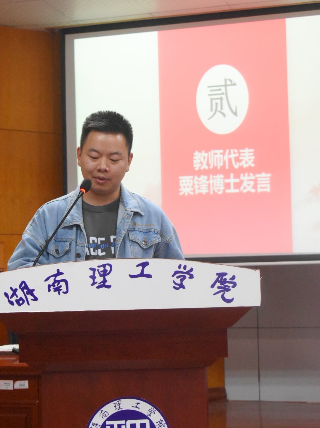 2022级思政一班班主任粟锋博士作为教师代表发言,他从“新生所处的时代背景、如何认识大学生活以及在大学应当怎样做”三个方面对所有新生的学习和规划提出有效建议。