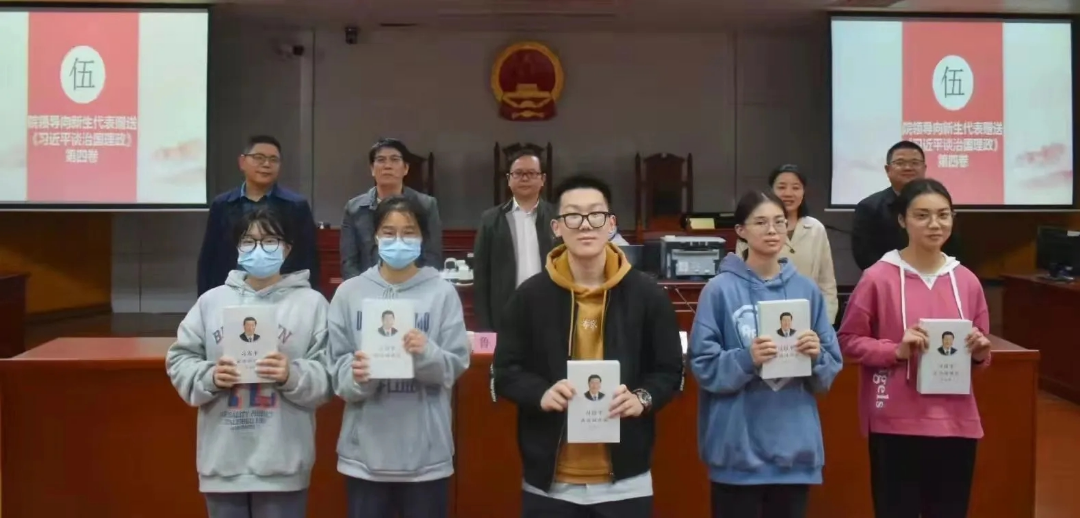 最后,学院领导为2022级新生代表赠送《习近平治国理政》第四卷,希望他们在未来的大学生活中不断学习贯彻习近平新时代中国特色社会主义思想,更好奋进新征程、建功新时代。