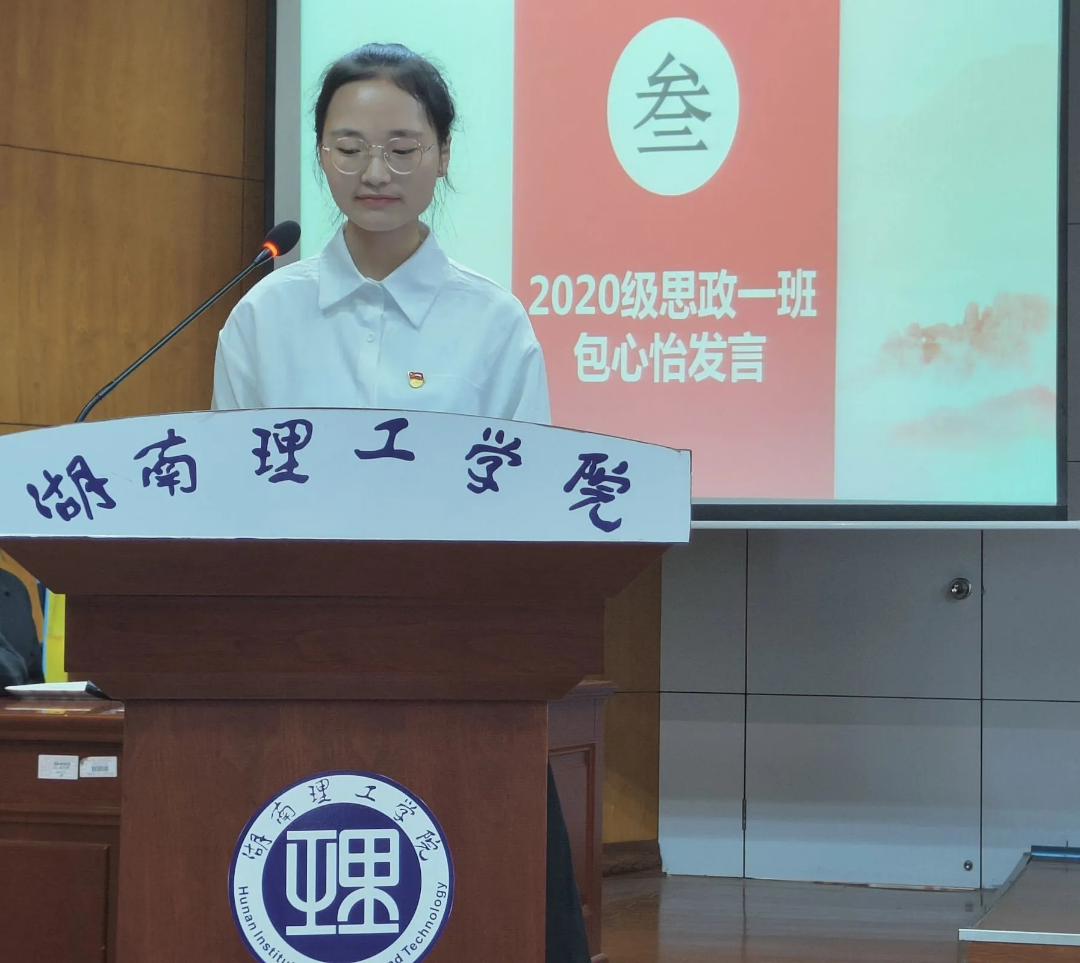 2020级思政一班包心怡同学作为老生代表发言。她结合自己的大学学习经历,告诉学弟学妹们要在大学生活中培养能力、历练人格在实干中寻找学习的真谛,要立志成为一名优秀的大学生,在刻苦学习专业知识的同时,还要在社团、学生组织、志愿活动中找寻前进的方向,不断增强自己实践能力。新生代表、2022级思政一班的许婧同学在发言中表示,自己将从明确目标、勤学善思,抓住机遇、提升能力,开拓创新、心怀梦想三个方面树立远大理想、坚定努力方向,在中国共产党的正确领导下书写无悔青春篇章。